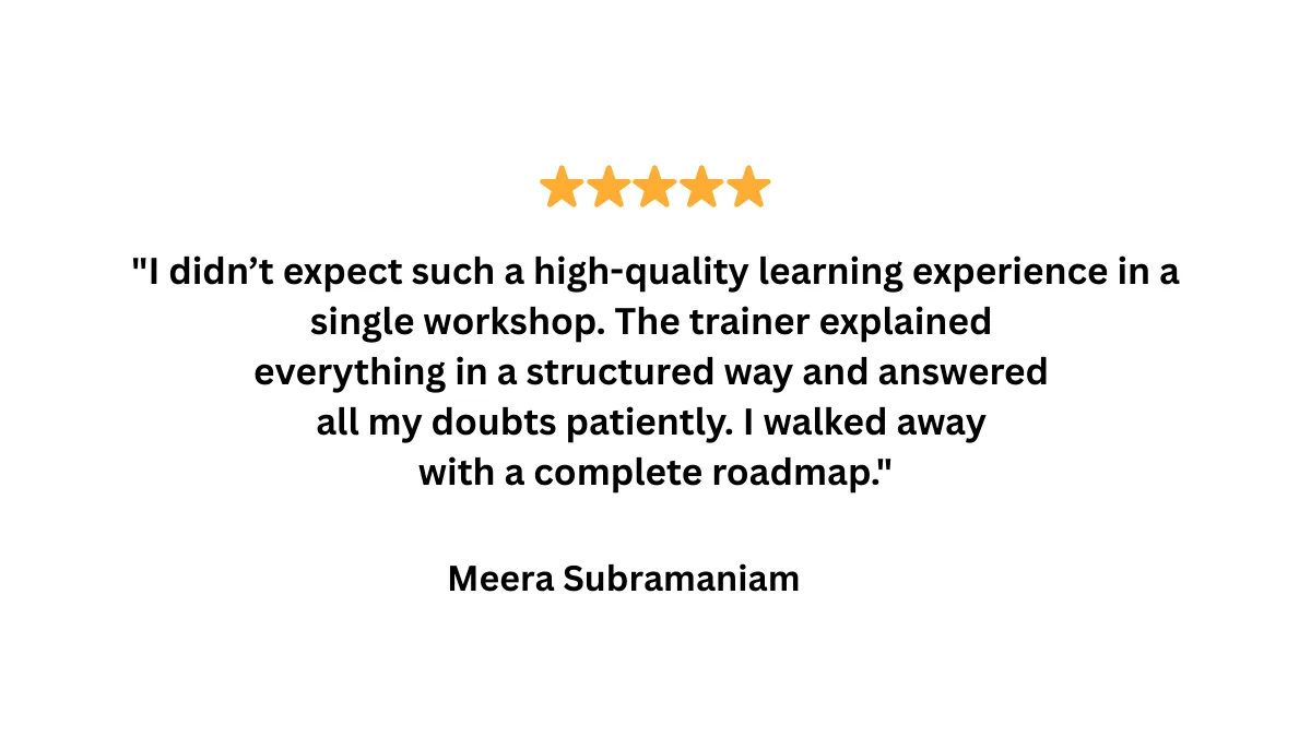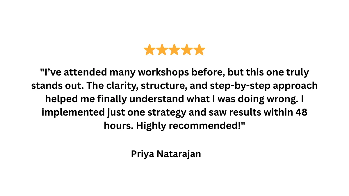 இந்த workshop beginners & aspiring creators-க்கு அவர்களின் knowledge, skills & passion-அ profitable digital products-ஆ மாற்றுற complete roadmap-அ teach பண்ணுறது. Idea selection → product creation → funnel → organic marketing → automation வரை full clarity கிடைக்கும்.