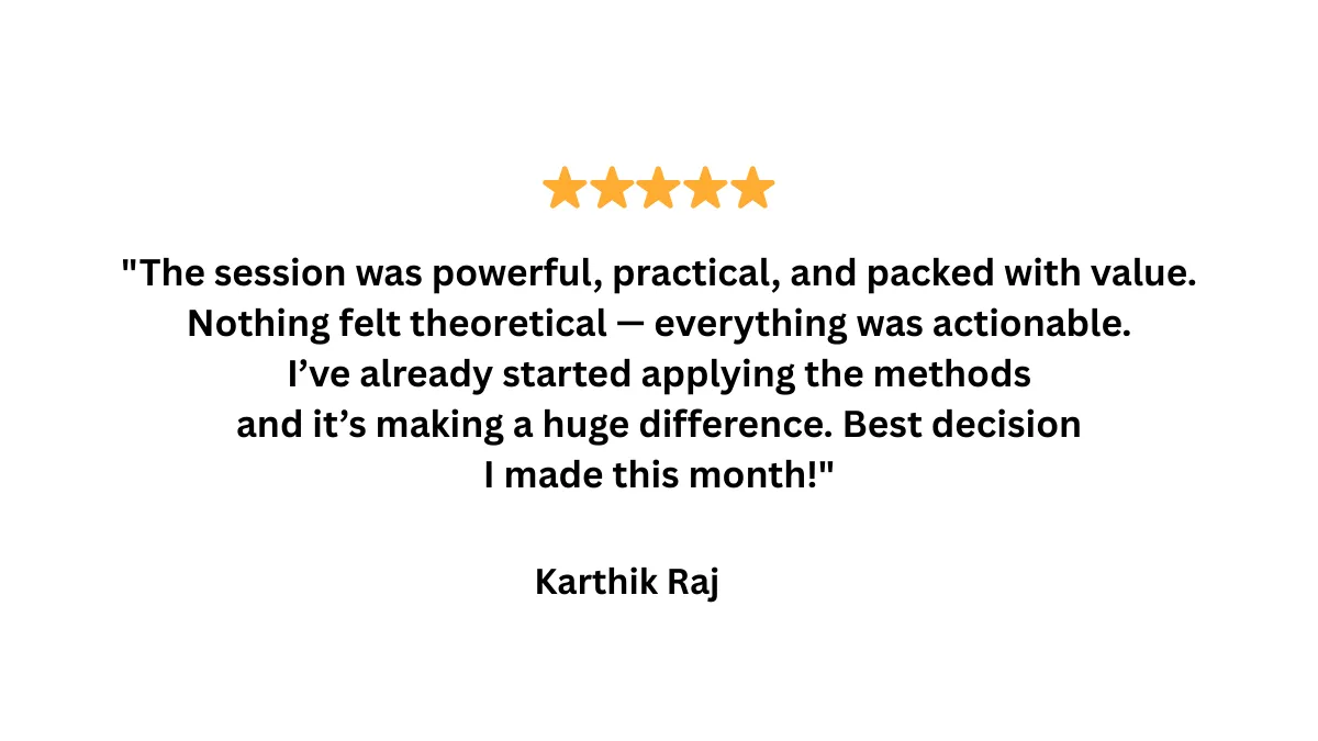 Attend the full session — useful இல்லன்னா 100% refund கிடைக்கும், any questions asked இல்லாமல்.